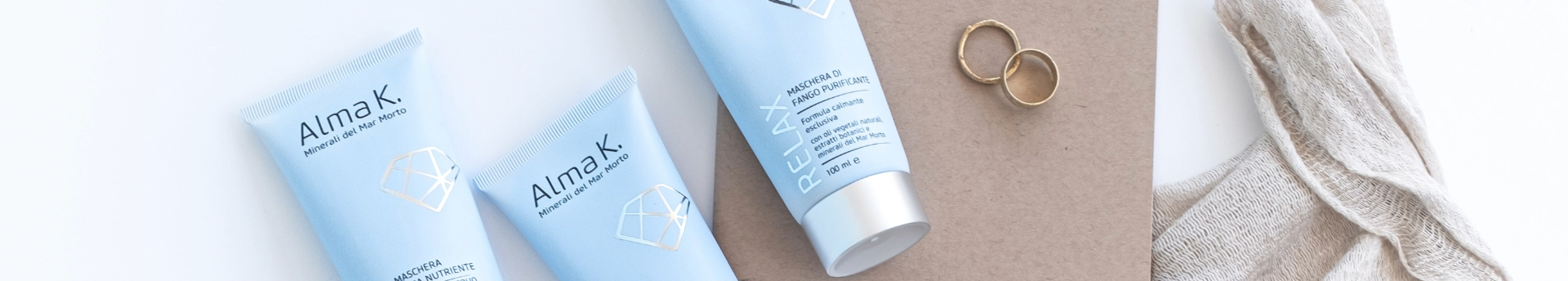 Una panoramica sui migliori accessori per la tua skincare selezionati da Alma K: dischetti struccanti, tonificanti ed esfolianti, candele profumate, fasce per capelli e borse da spiaggia.