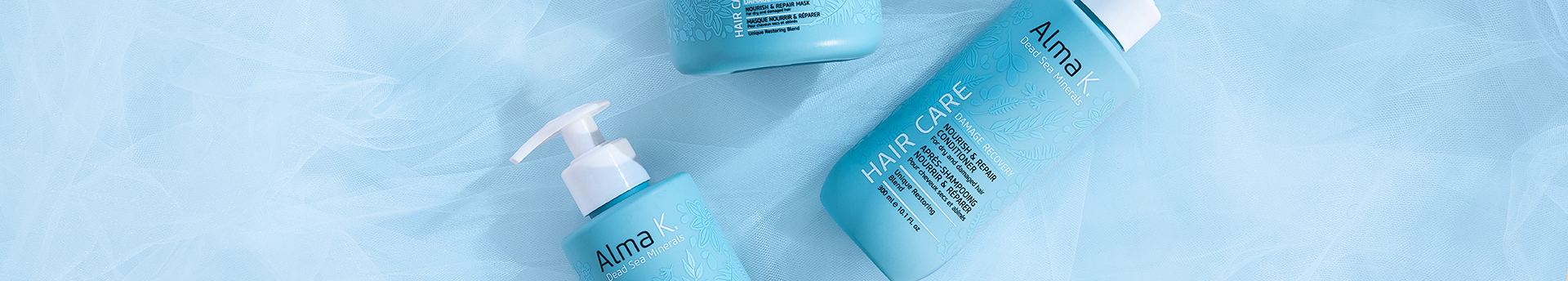 Un trattamento completo con shampoo, balsamo e maschera per ricostituire e riparare i tuoi capelli grazie ad oli vegetali nutrienti e rivitalizzanti, acido ialuronico e minerali del Mar Morto.